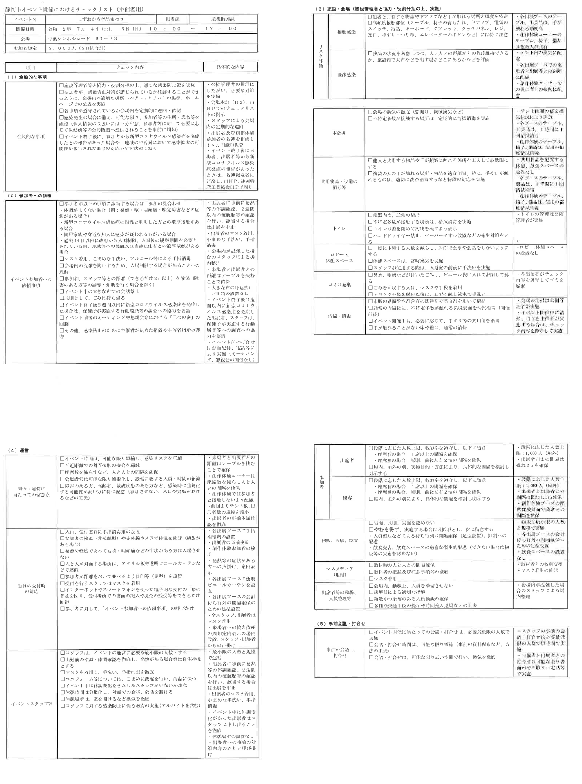 | *「新型コロナウイルス感染症に係る市主催イベント等の開催に関する基本方針」に基づき作成した「静岡市イベント開催におけるチェックリスト(主催者用)」により、感染防止対策を講じております。 *イベント終了後2週間以内に新型コロナウイルス感染症が発症した場合は、保健所が実施する行動履歴等の調査へご協力願います。 |